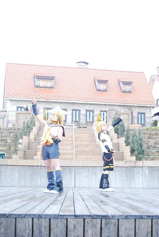 ・雨にうたれながら、リンとレンでピン撮影。