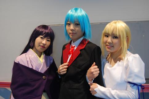 朝10時半に待ち合わせ。Nちゃんと合流して、会場へ。中に入って、受付すませて、更衣室へ。着替えて、メイクスペースでメイクやら準備。準備を終わらせ、荷物を預けてから、撮影へ。人が凄すぎて、撮影する場所がなくて、勇気を出して外へ。移動中、ギアスやってた、Nゆさんに会った。少し話してから、外へ。風強い~!!少しピンを撮ってから、室内へ逃げ込み、室内で場所探し。探してると、ギアス合わせしてた、NこちゃんとR花さんに会い、ツーショを撮ってもらったり、撮ったりしました。で、場所も確保出来て、そこで撮影。Nちゃんのヨウラン素敵だったよ~!髪形も凄かったし!シンは、アカデミー久々で楽しかった♪(笑)途中、アビス合わせしてたSとHに会い、ツーショを撮ったり、撮ってもらったり。みんなで喋ってると、しゅごキャラやってたAリスさんに会った。写真を撮らせてもらって、別れた後、みんなでまったりタイム!NこちゃんとR花さんと一緒にいろいろ話してました。途中、おお振り合わせしてたTくんに会った。蒸気探偵団見直します!(私信/笑)その後、種合わせしてたSとHに会い、ツーショを撮ってから別れ、自分達も少し写真撮ってから、時間も時間だったので、着替えに。