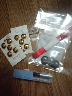 今日買ってきた、ボタンとリボンと眉に使うペン。